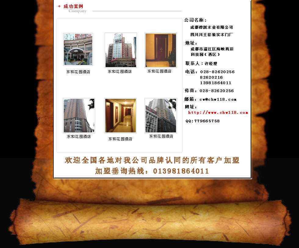 成都樺凱木業(yè)有限公司. 以生產(chǎn)經(jīng)營(yíng)“川王”品牌原木門(mén)和實(shí)木木質(zhì)門(mén)為主,在成都臺(tái)商投資區(qū)建立了近2萬(wàn)平方米的生產(chǎn)基地。公司直營(yíng)店遍布重慶和西南三省主要建材市場(chǎng)和裝飾城,并建立了全國(guó)各地的經(jīng)銷(xiāo)網(wǎng)絡(luò)。我公司主要制定了整套與銷(xiāo)售配套的售后服務(wù)體系。在全國(guó)實(shí)施后收到了良好的成效。 “川王”品牌至今經(jīng)過(guò)十余年的努力,在川渝兩地形成直營(yíng)店10多家、各地經(jīng)銷(xiāo)商數(shù)十家的產(chǎn)供銷(xiāo)一條龍的企業(yè),銷(xiāo)售木門(mén)十多年來(lái),積累了豐富的市場(chǎng)開(kāi)拓及售后服務(wù)經(jīng)驗(yàn),創(chuàng)造了十年零投訴的市場(chǎng)佳績(jī)。 公司經(jīng)過(guò)十余年的發(fā)展,現(xiàn)擁有一批高素質(zhì)的生產(chǎn)經(jīng)營(yíng)管理團(tuán)隊(duì),其中工商管理碩士2名,中級(jí)技術(shù)職稱(chēng)人員8名,大中專(zhuān)畢業(yè)生40多名,并擁有一大批熟練的操作工人和技術(shù)人員。公司還同四川大學(xué)藝術(shù)學(xué)院聯(lián)合開(kāi)辦研究所,合作開(kāi)發(fā)木門(mén)新產(chǎn)品,具有很強(qiáng)的創(chuàng)新能力,強(qiáng)力支撐企業(yè)市場(chǎng)競(jìng)爭(zhēng)與發(fā)展。