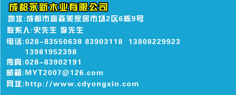 成都永新木業(yè)有限公司成立于1996年,地處成都市新都區(qū),公司占地面積20000多平方米,是一家以進口鐵杉木、胡桃木、柚木、櫸木、花梨木等優(yōu)質(zhì)名貴木材為原料的專注純實木門的生產(chǎn)企業(yè)。公司產(chǎn)品以簡約風格著稱,致力于打造“新東方主義與歐式精典的完美結(jié)合”。公司定位于服務(wù)中高端階層的家居消費層次,在產(chǎn)品的生產(chǎn)與研發(fā)上,致力于滿足消費者的個性化需求,與現(xiàn)代國際營銷理念接軌,將先進的家居文化引入消費者的生活。我們堅持“經(jīng)典源于創(chuàng)新,卓越在于追求”的企業(yè)理念,努力為消費者的家居生活提供高品質(zhì)的服務(wù)。同時公司擁有一流的生產(chǎn)硬件和專業(yè)的管理軟件,且通過了ISO9001質(zhì)量管理認證體系標準。同時,公司產(chǎn)品于2000年被評為“四川省群眾喜愛產(chǎn)品稱號”。